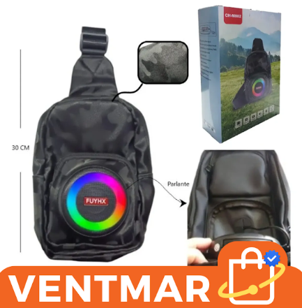 La mochila bandolera con parlante Bluetooth RGB integrado permite escuchar música sin auriculares mientras transportás tus objetos personales cómodamente. Su diseño compacto cruzado es ideal para uso diario, viajes, salidas o transporte urbano.