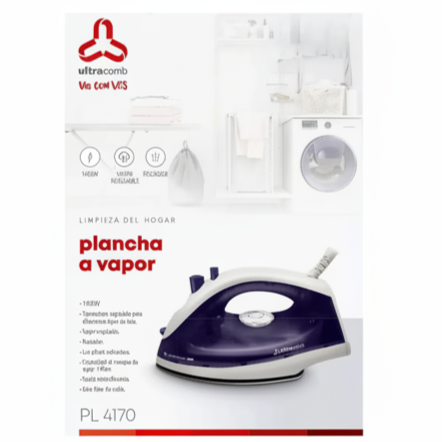 La plancha a vapor Ultracomb PL-4170 está diseñada para ofrecer un planchado práctico y eficiente, adaptándose a distintos tipos de telas mediante un control sencillo y funcional.