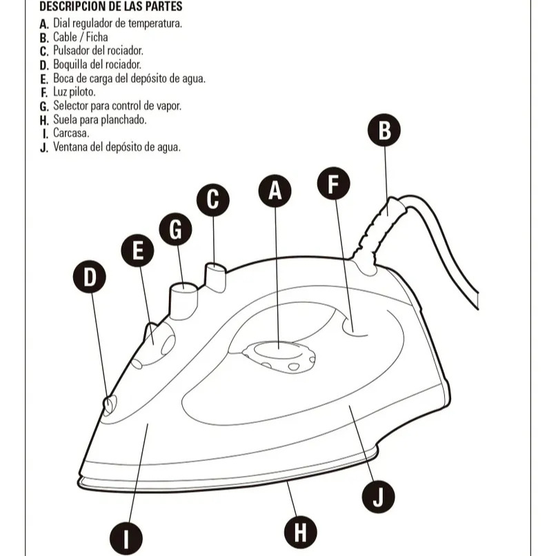 Incorpora vapor regulable y función rociador que facilita la eliminación de arrugas, junto con luz piloto indicadora que señala el funcionamiento del equipo.
