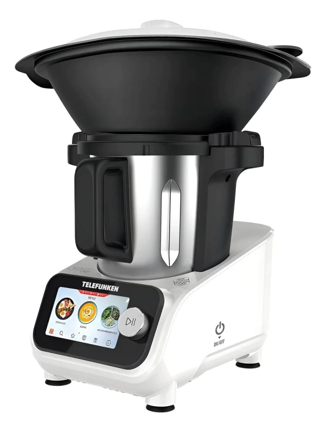 - Su diseño elegante y moderno; su recipiente de acero inoxidable alemán de 3,5L, la balanza integrada de hasta 5kg y sus 9 accesorios incluidos te dan todo lo que necesitás para cocinar fácil, rico y variado en casa.